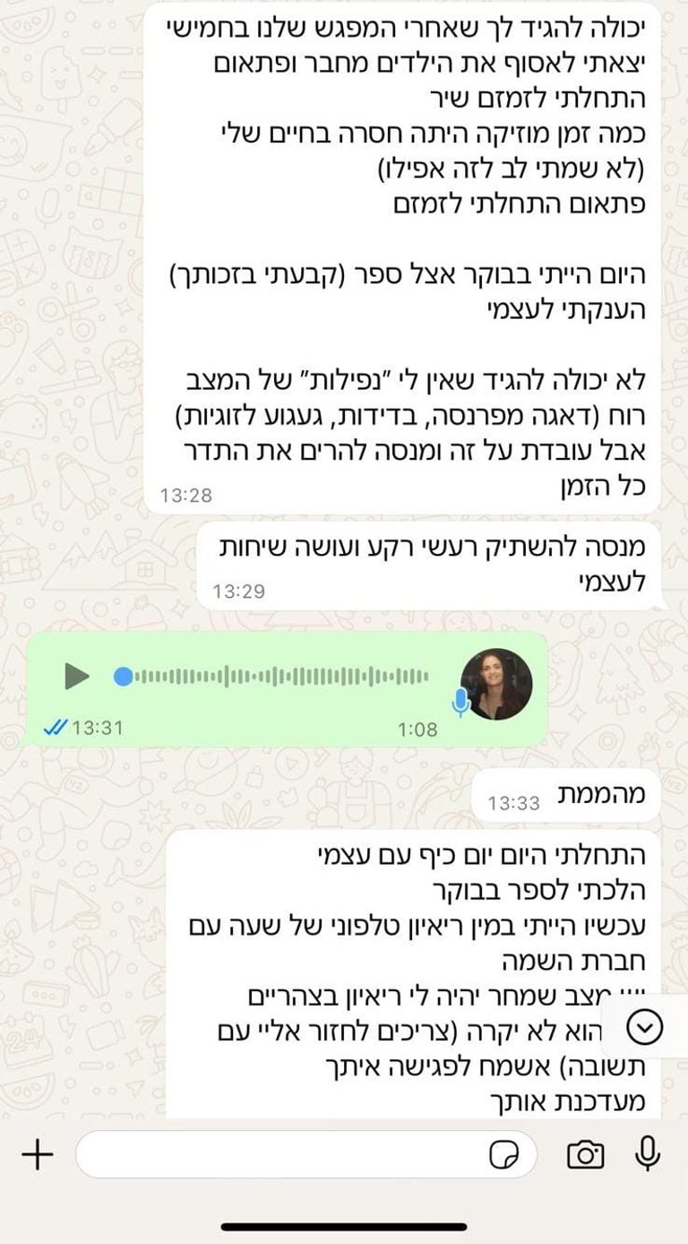 הבנתי פתאום דברים שאני חווה, פרשנות שלא הייתה חשופה בפניי קודם לכן.