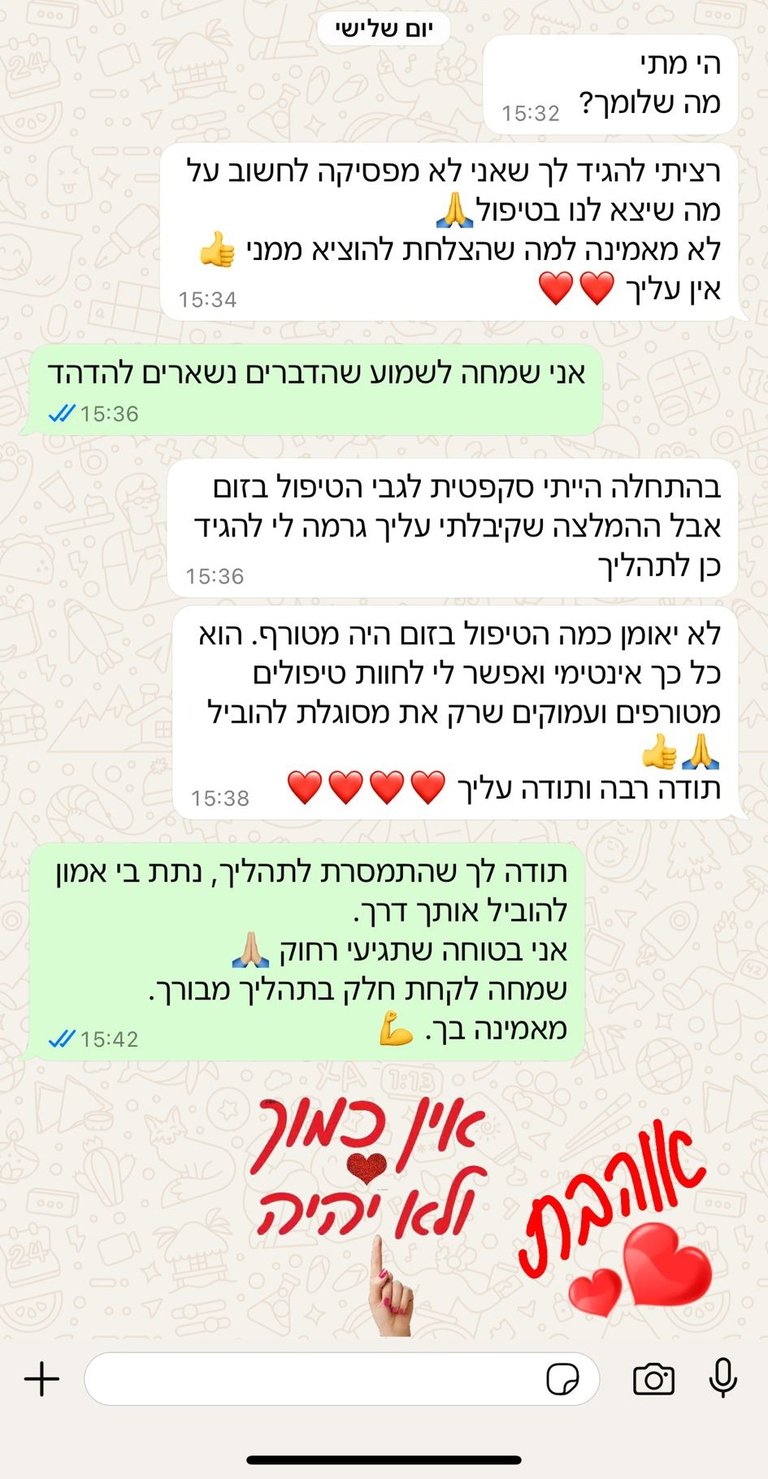 ההצלחה של המטופלים אותם אני מלווה היא לגמרי גם הצלחה שלי!